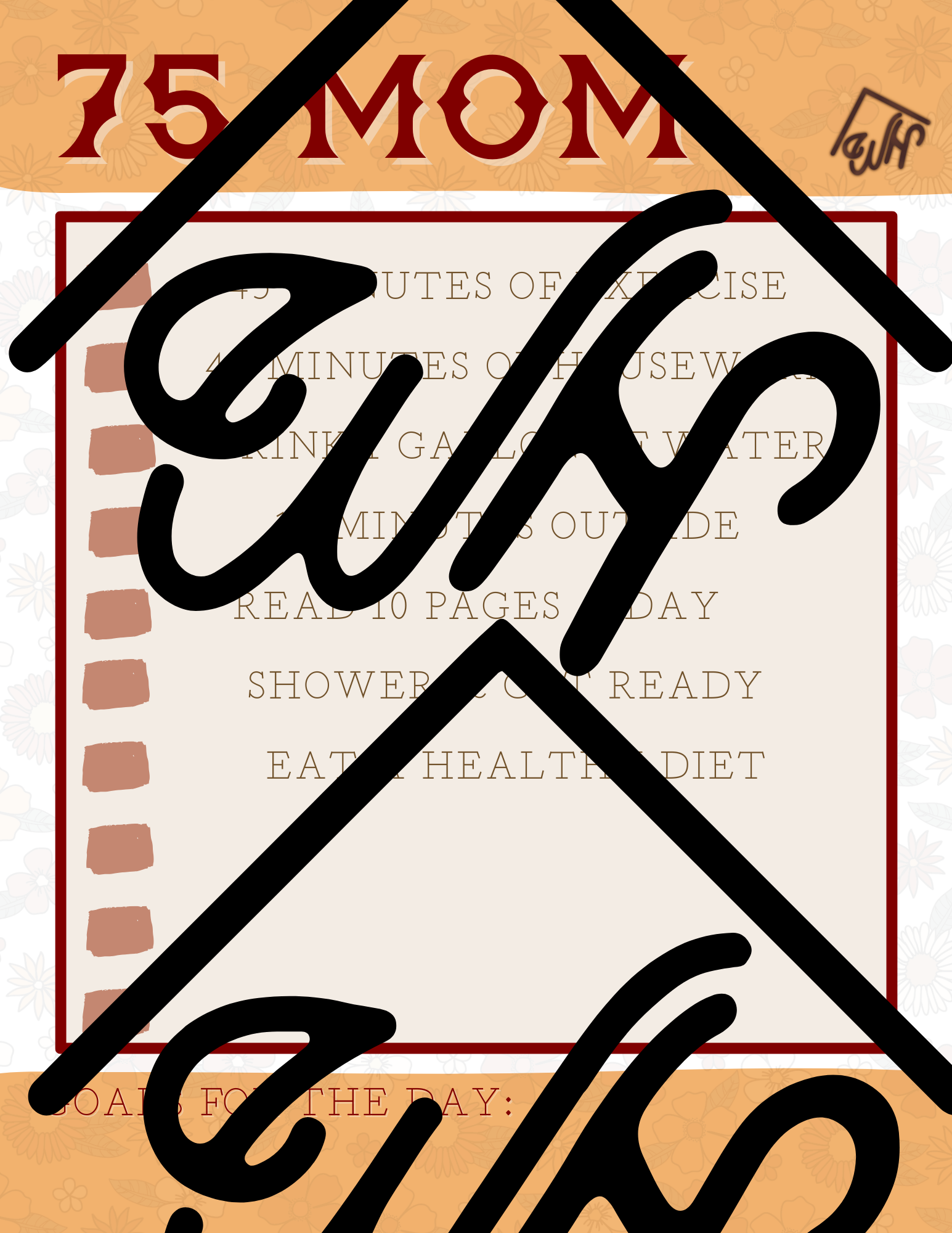 The 75 mom challenge went viral online as a way to encourage moms to be their best self everyday, and give back to their health and sanity. We created a fun spin on the checklist so you can set yourself up everyday with a freshly printed checklist or use it on your ipad/tablet for easy access and duplication.