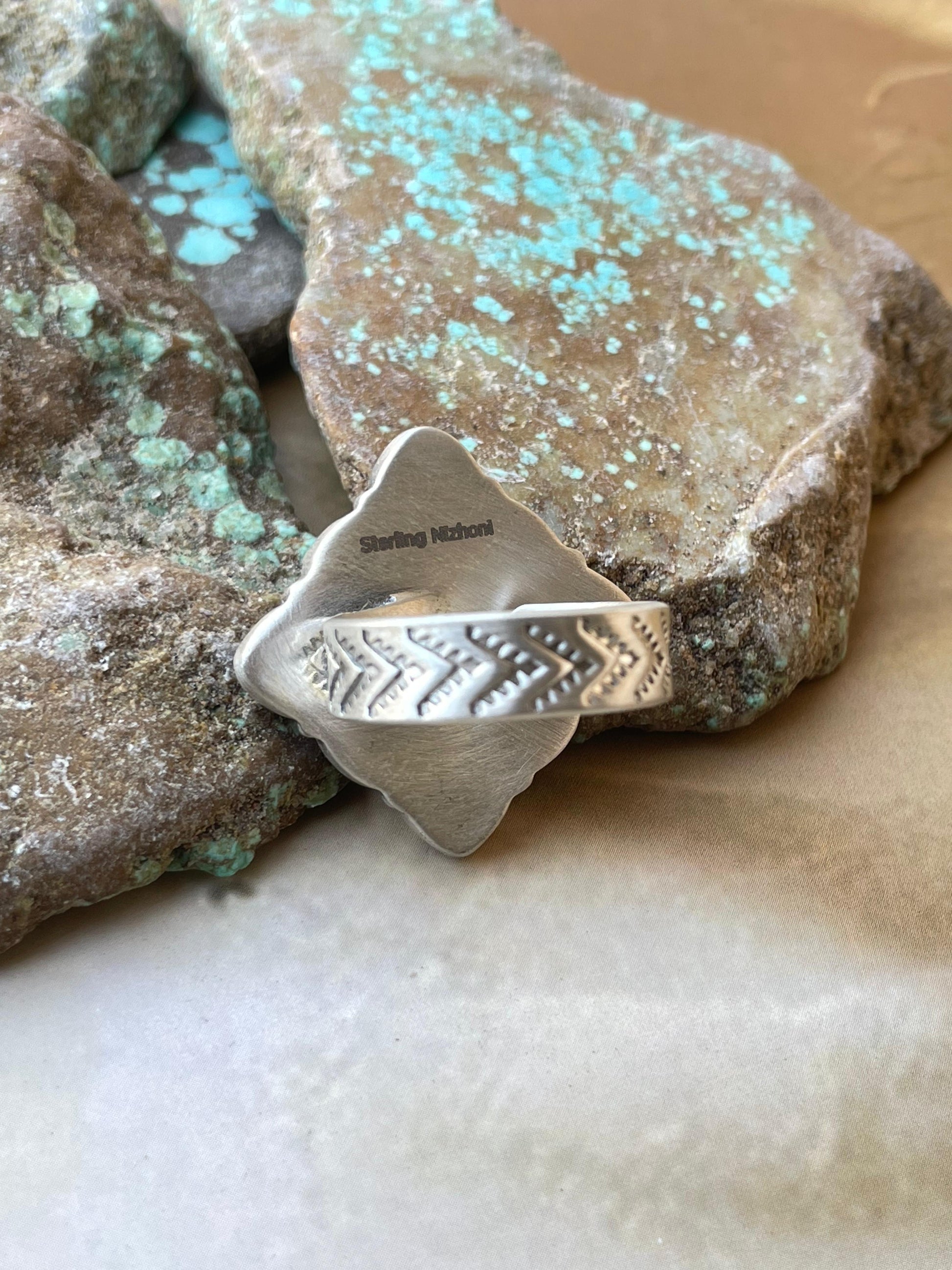 Signed Nizhoni and stamped Sterling.