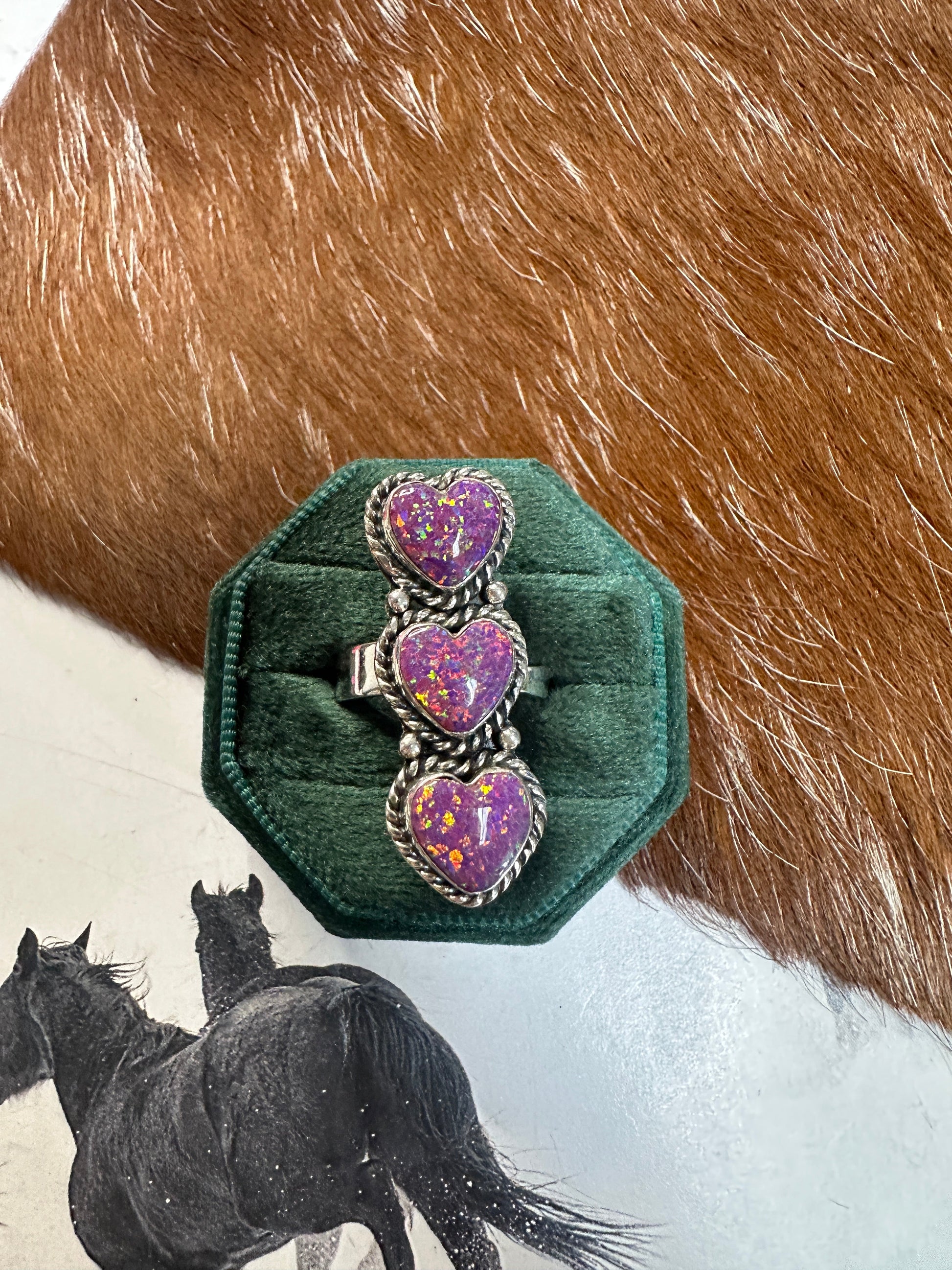 Beautiful Handmade Fire Opal And Sterling Silver Adjustable 3 Stone HEART Ring
