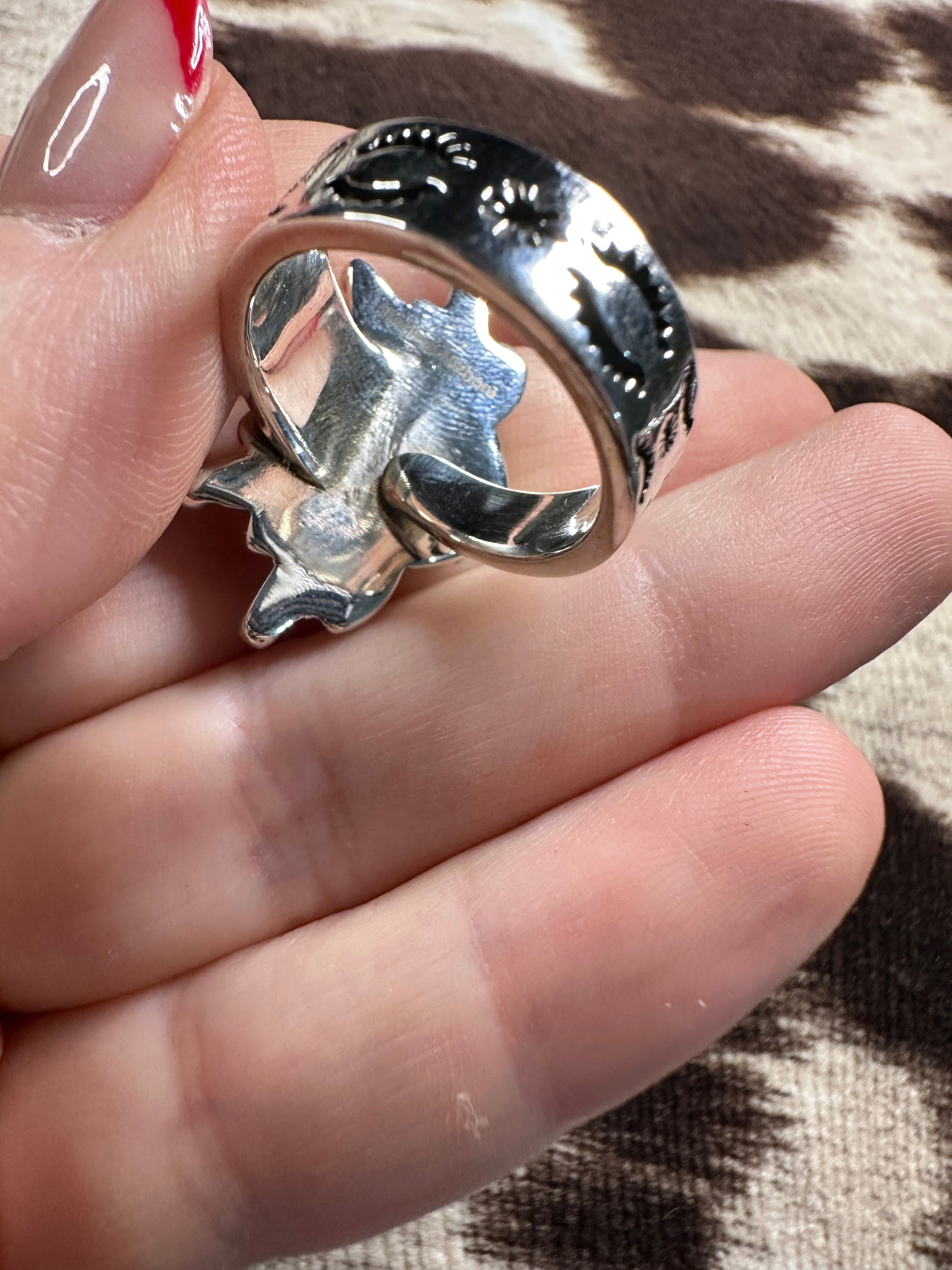 Beautiful Handmade Golden Hills Turquoise And Sterling Silver Adjustable Crescent Ring