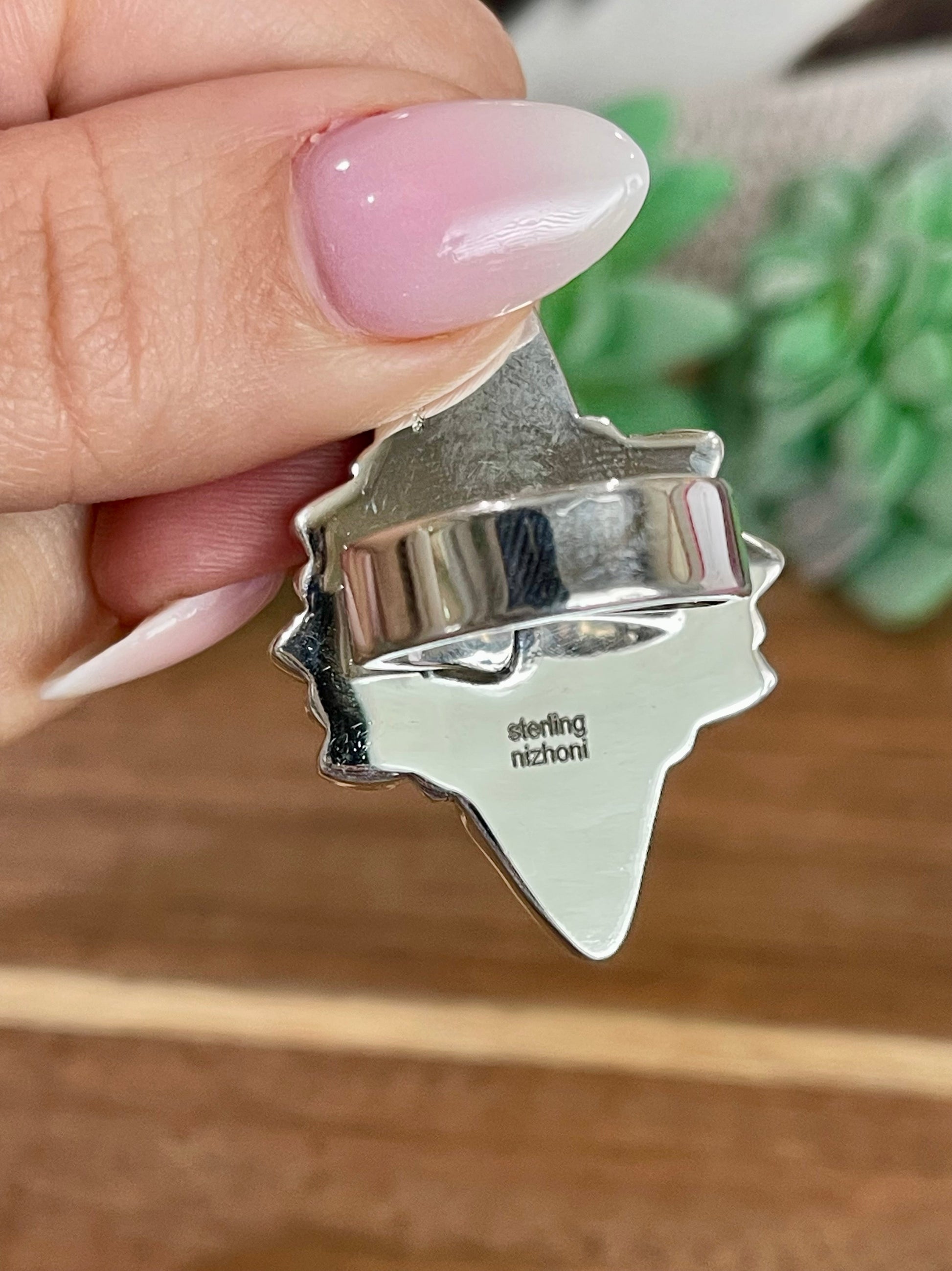 Gorgeous Handmade New Lander Turquoise, Turquoise And Sterling Silver ring. Adjustable in size to wear on any finger. Beautiful stones. Beautiful details. Really great Ring. Measuring just over 1 3/4 inches long and about 1 1/8 inches wide . Signed Nizhoni and stamped Sterling.