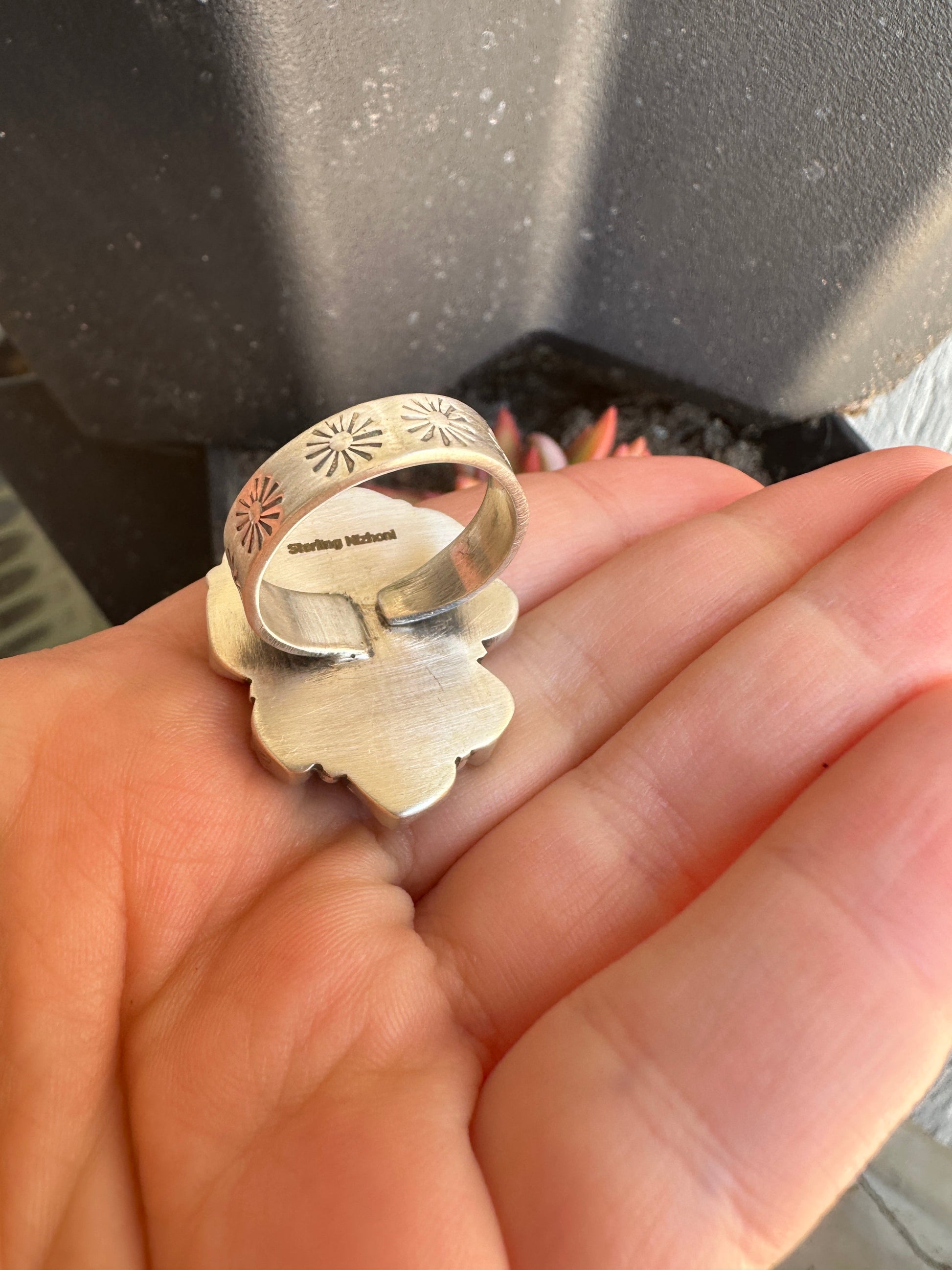 Signed Nizhoni and stamped Sterling.