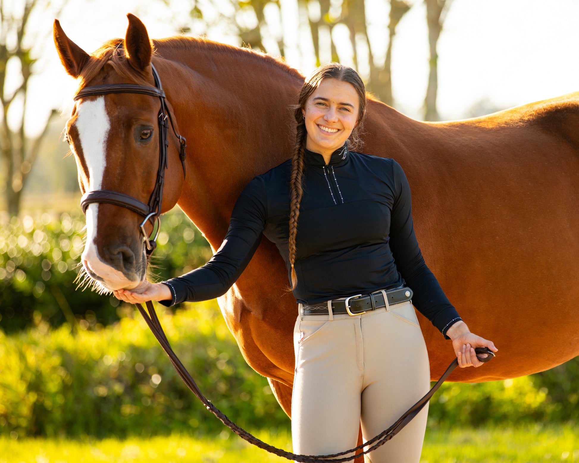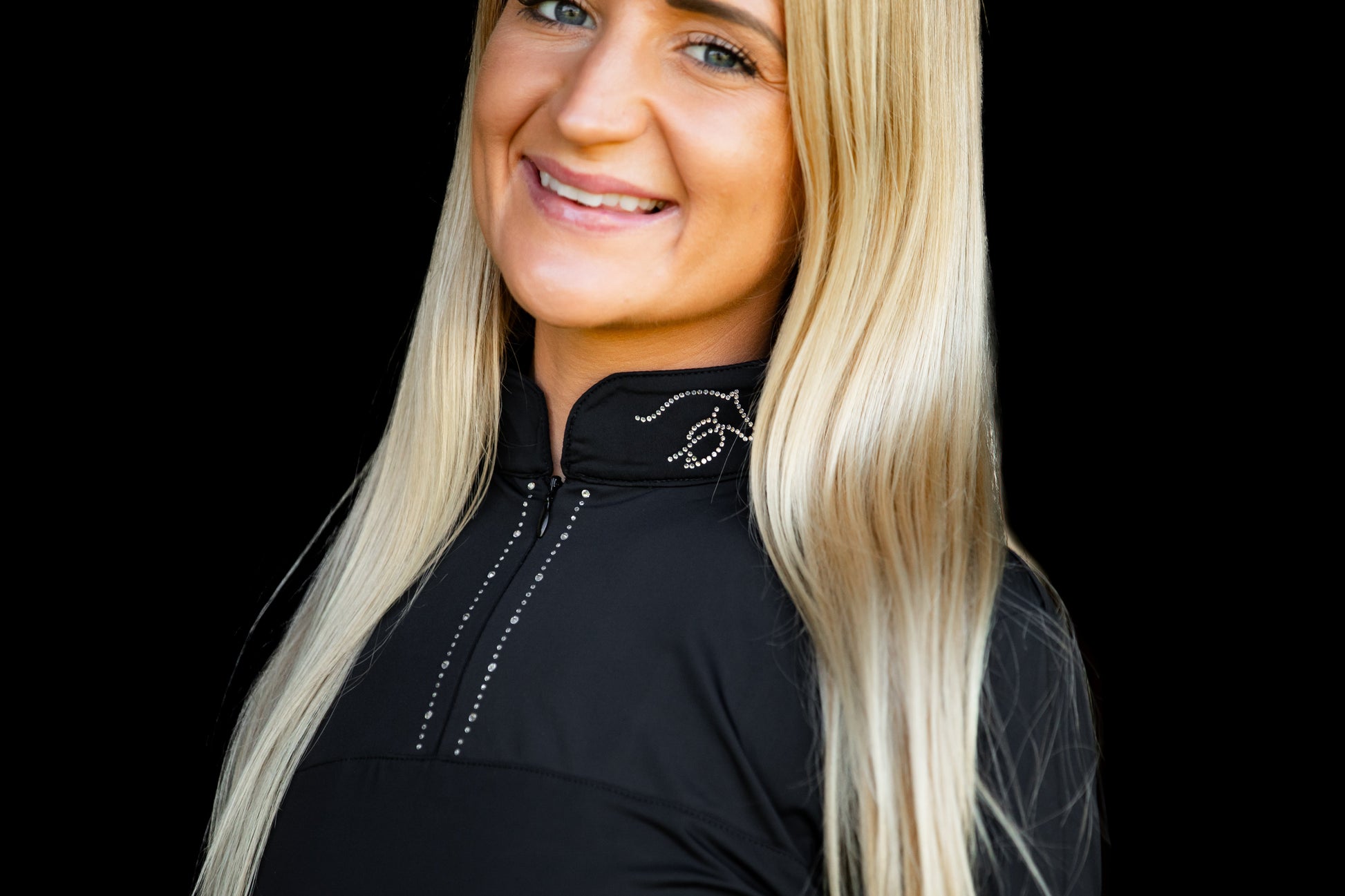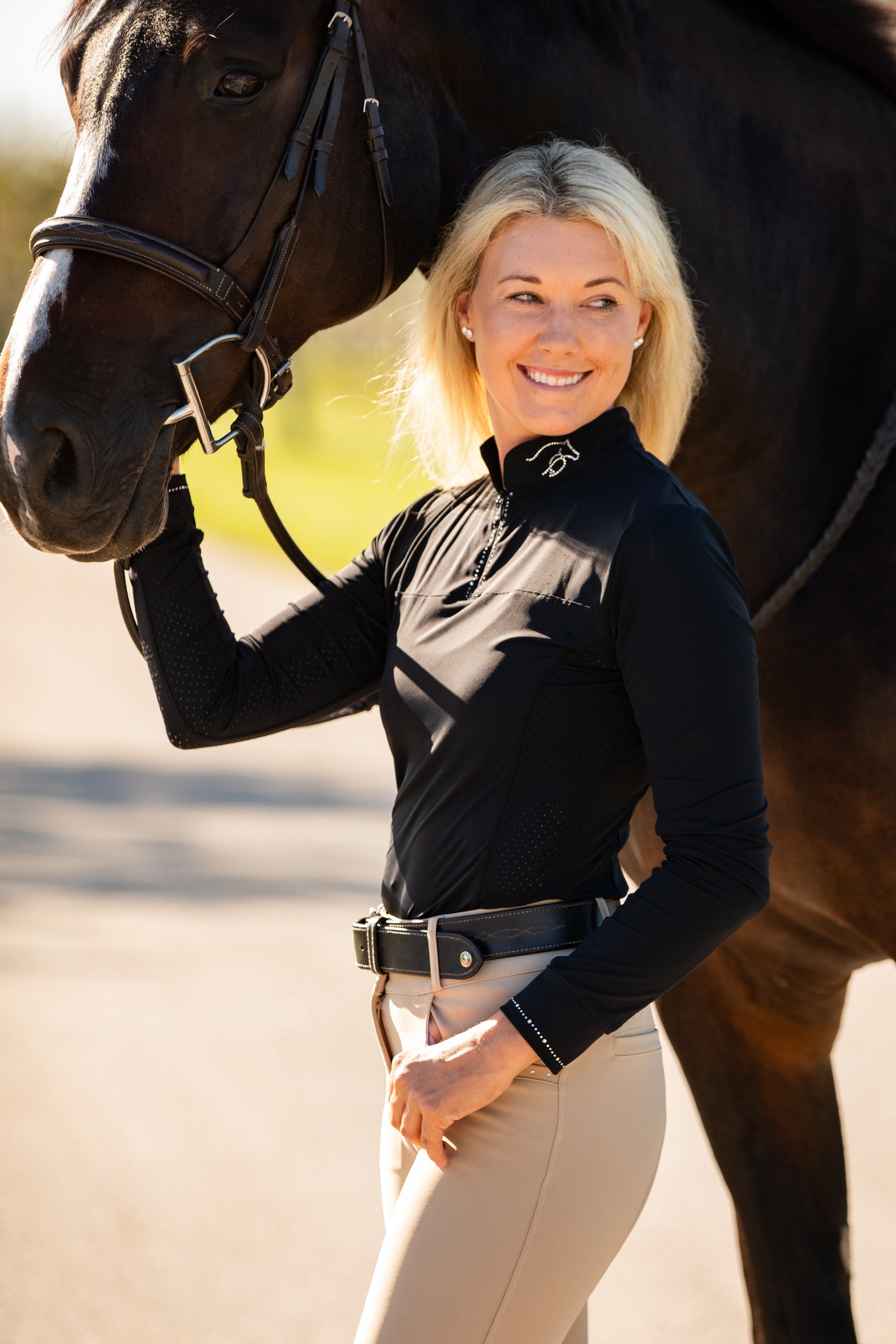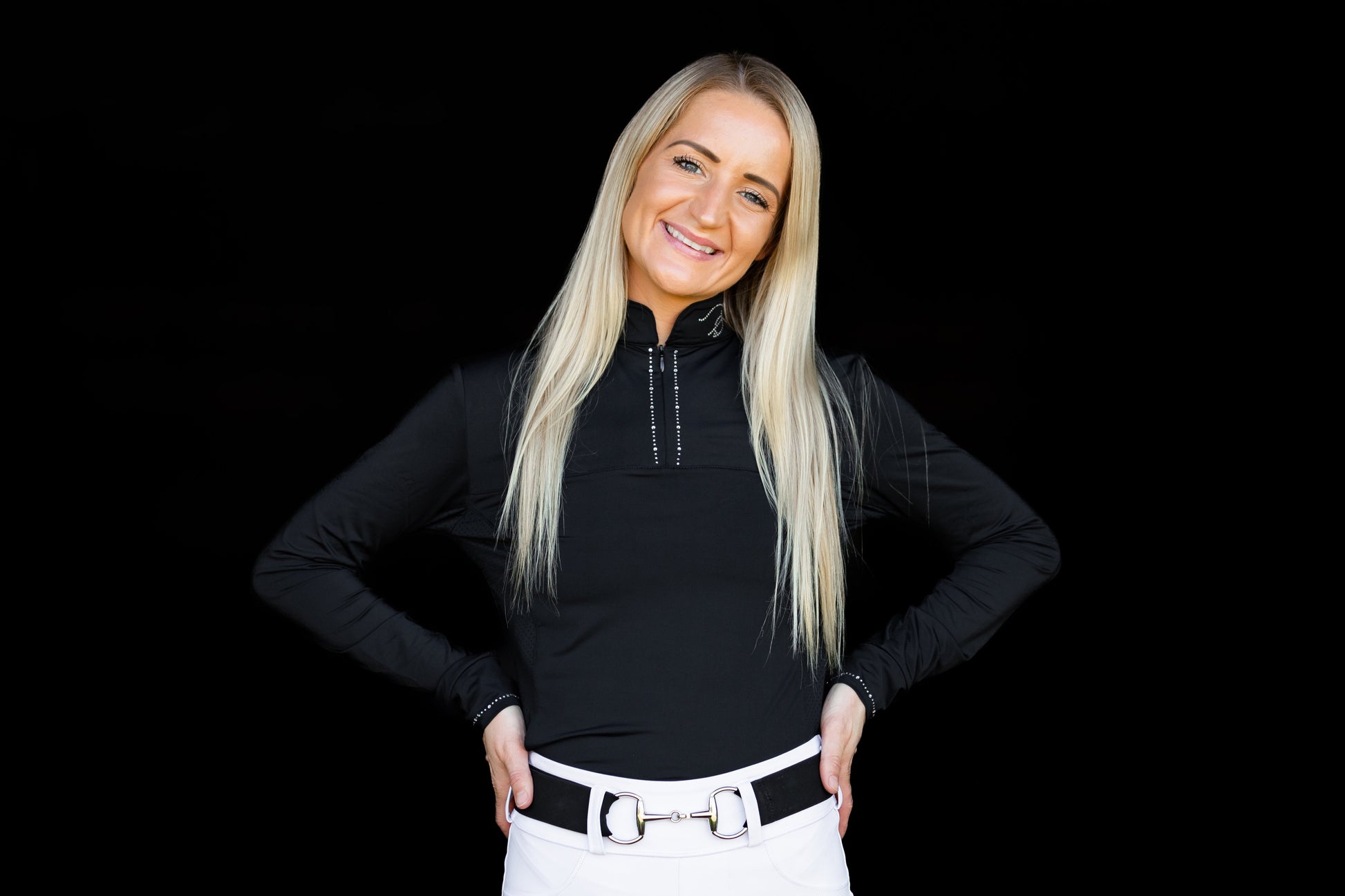 Crystals on front with half zip down, crystal horse & crystals on the cuffs!