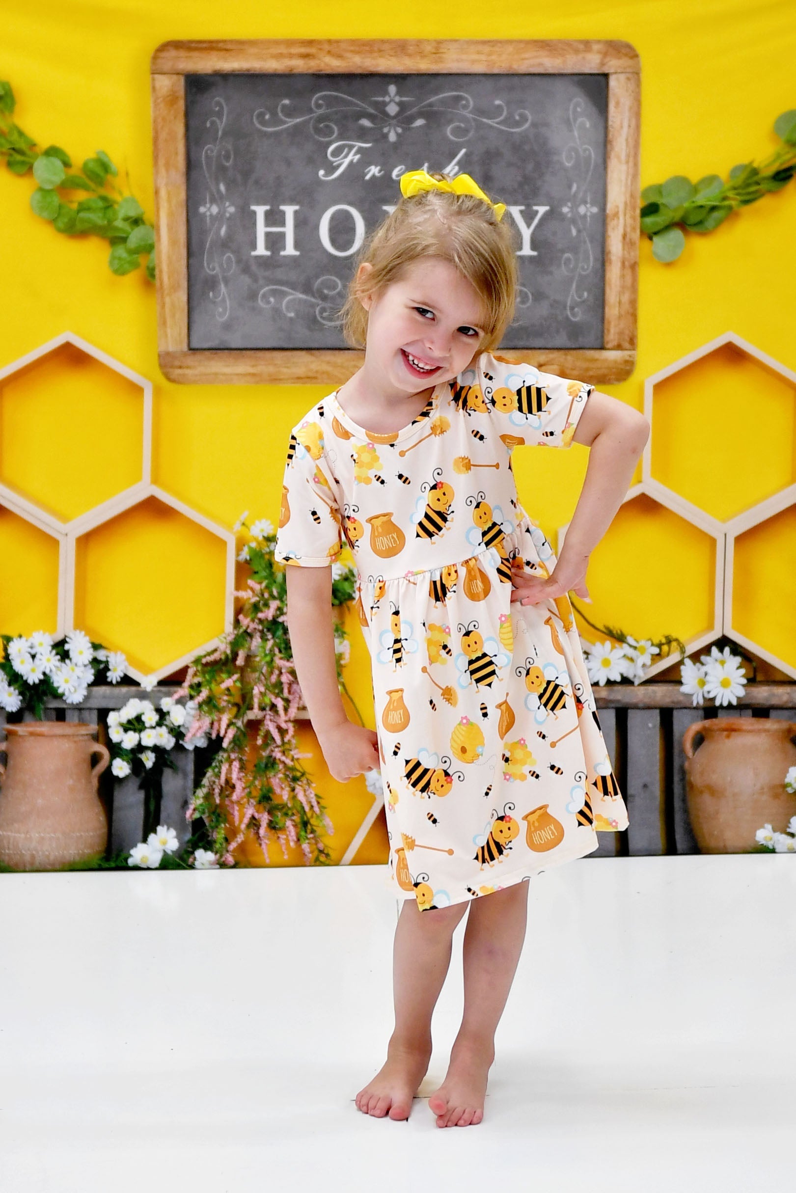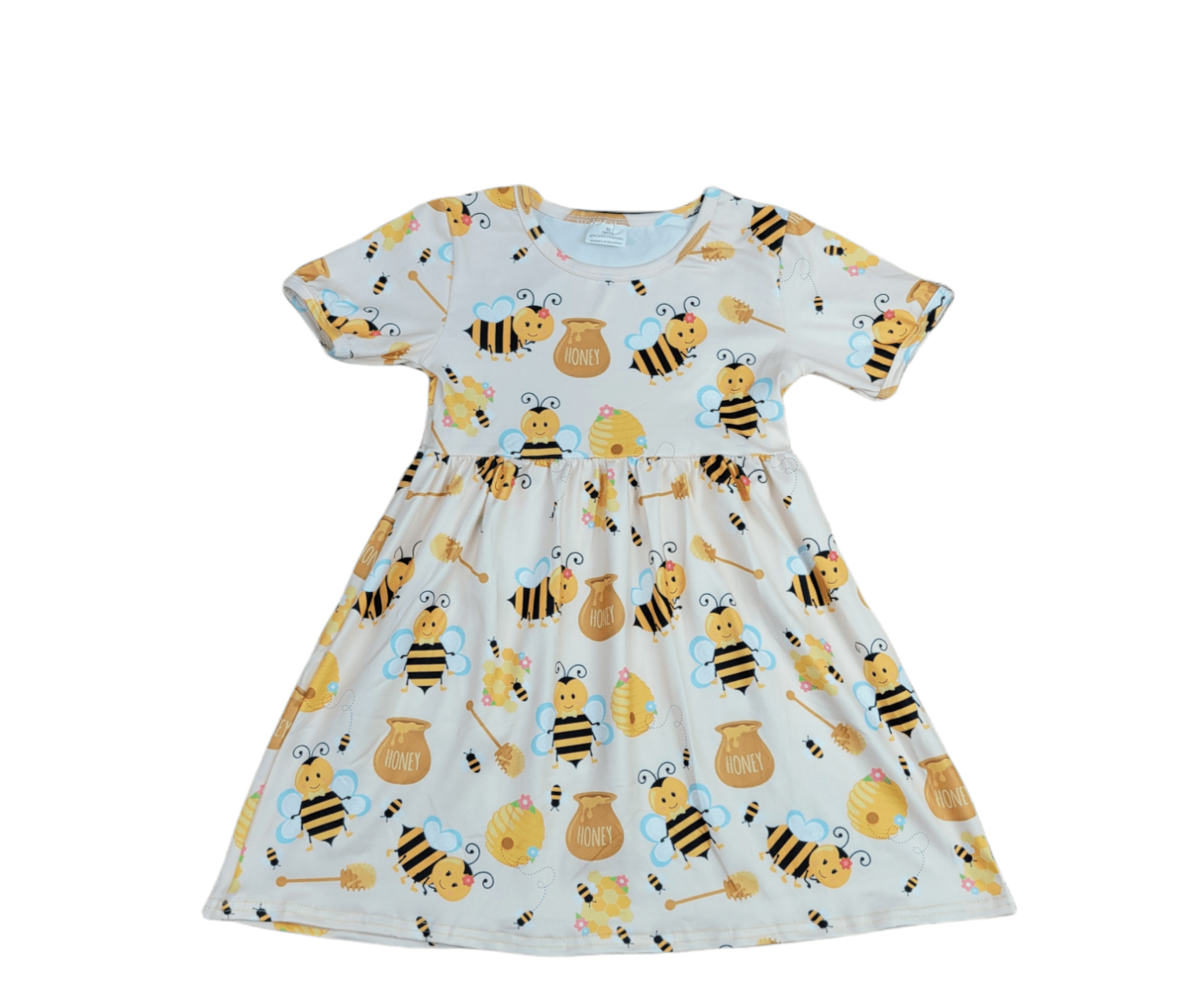 Get ready for spring with some cute bees! They are all the buzz! Made out of Milk Silk which is 95% Cotton and 5% Spandex not only is this dress ultra comfortable but it is also Wrinkle Free!