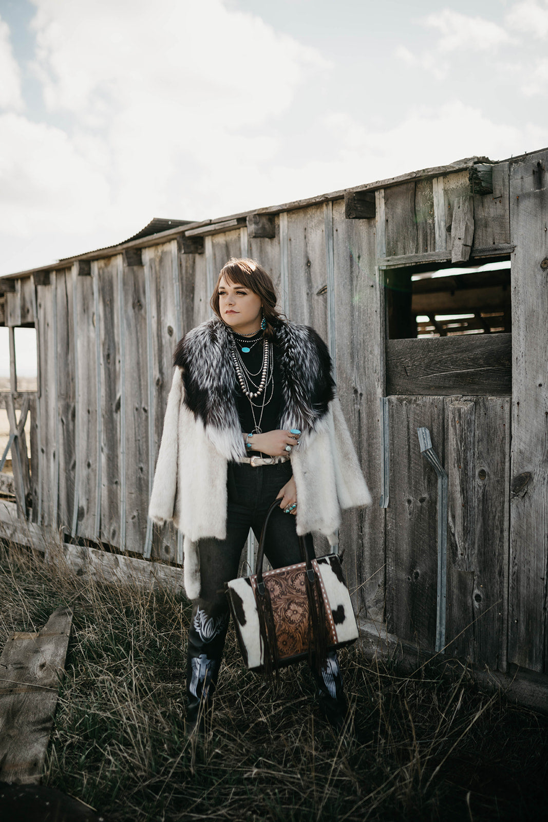 Due to the nature of genuine cowhide every purse will be one of a kind as each purse will be made with a unique cowhide piece. Branding logo may be light or dark brown.