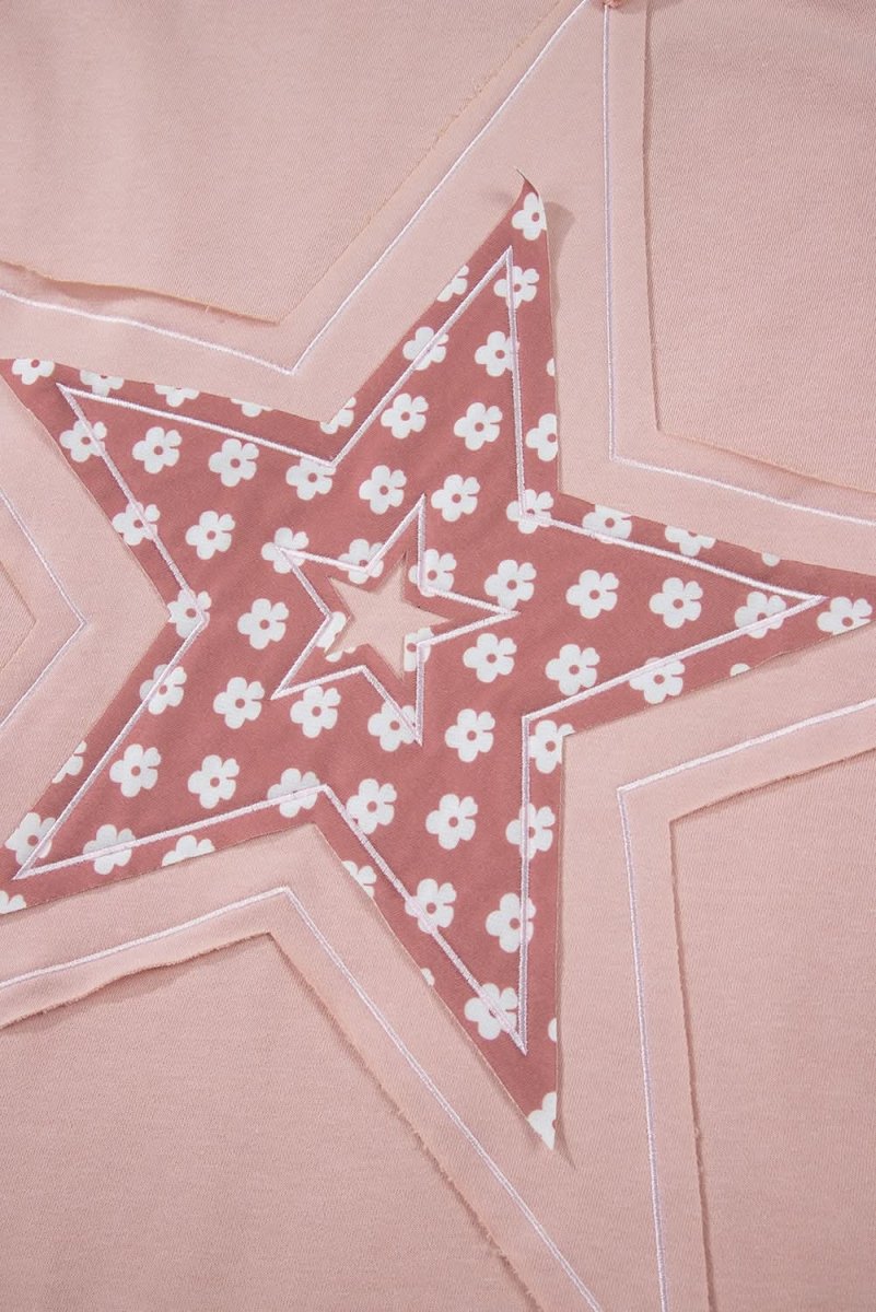 Delicacy Star Patch Graphic Floral Color Block Drawstring Plus Size Hoodie