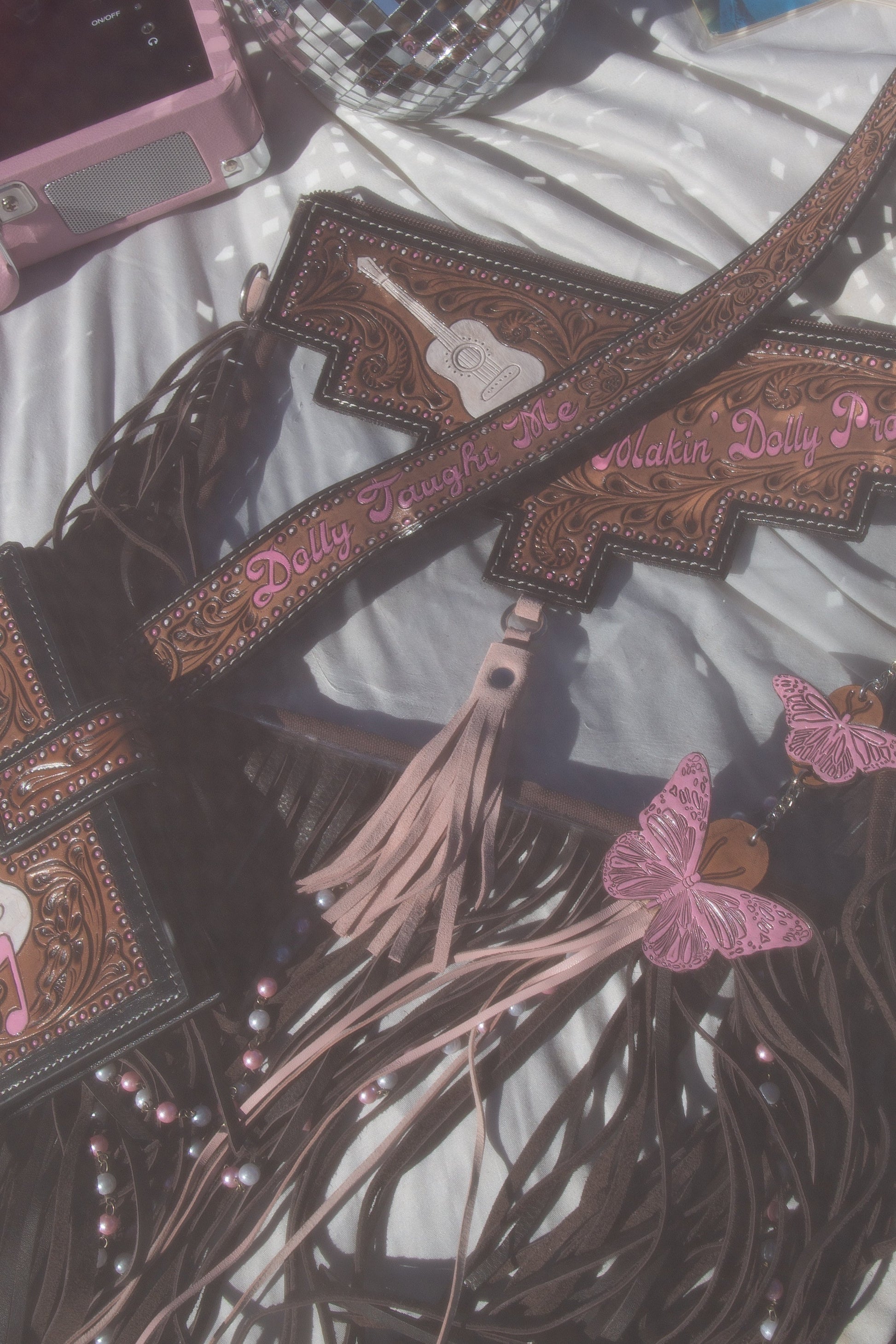 Introducing Dolly Taught Me, a Haute Southern Hyde by Beth Marie Exclusive. Featuring beautiful tooling with pops of pink, and a matching tooled strap. Ofcourse she has a clear bag body to be stadium and event ready. She closes via zipper to keep your valuables safe.