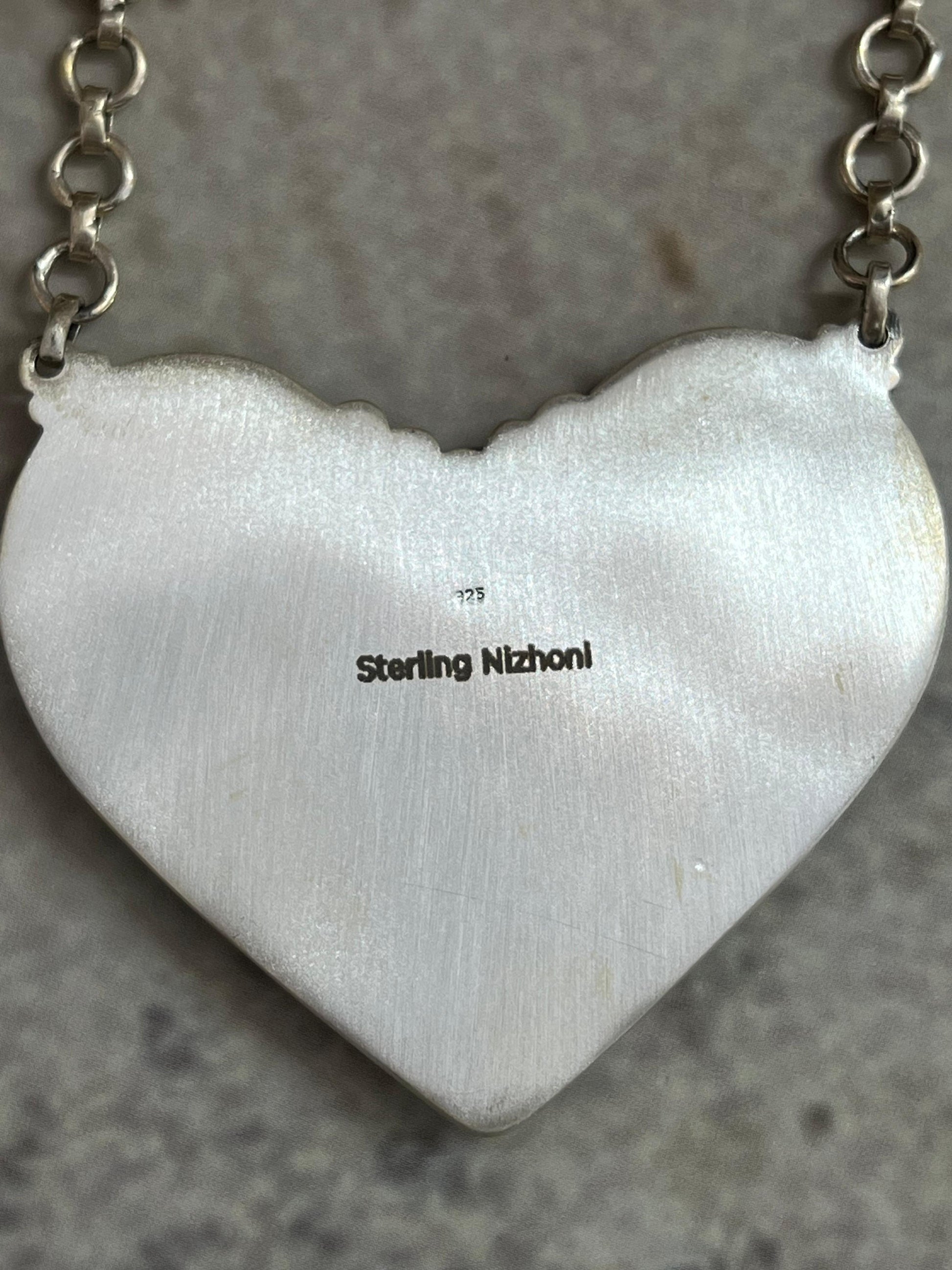 Handmade Sterling Silver Golden Hills Turquoise Heart Necklace with Signed Nizhoni