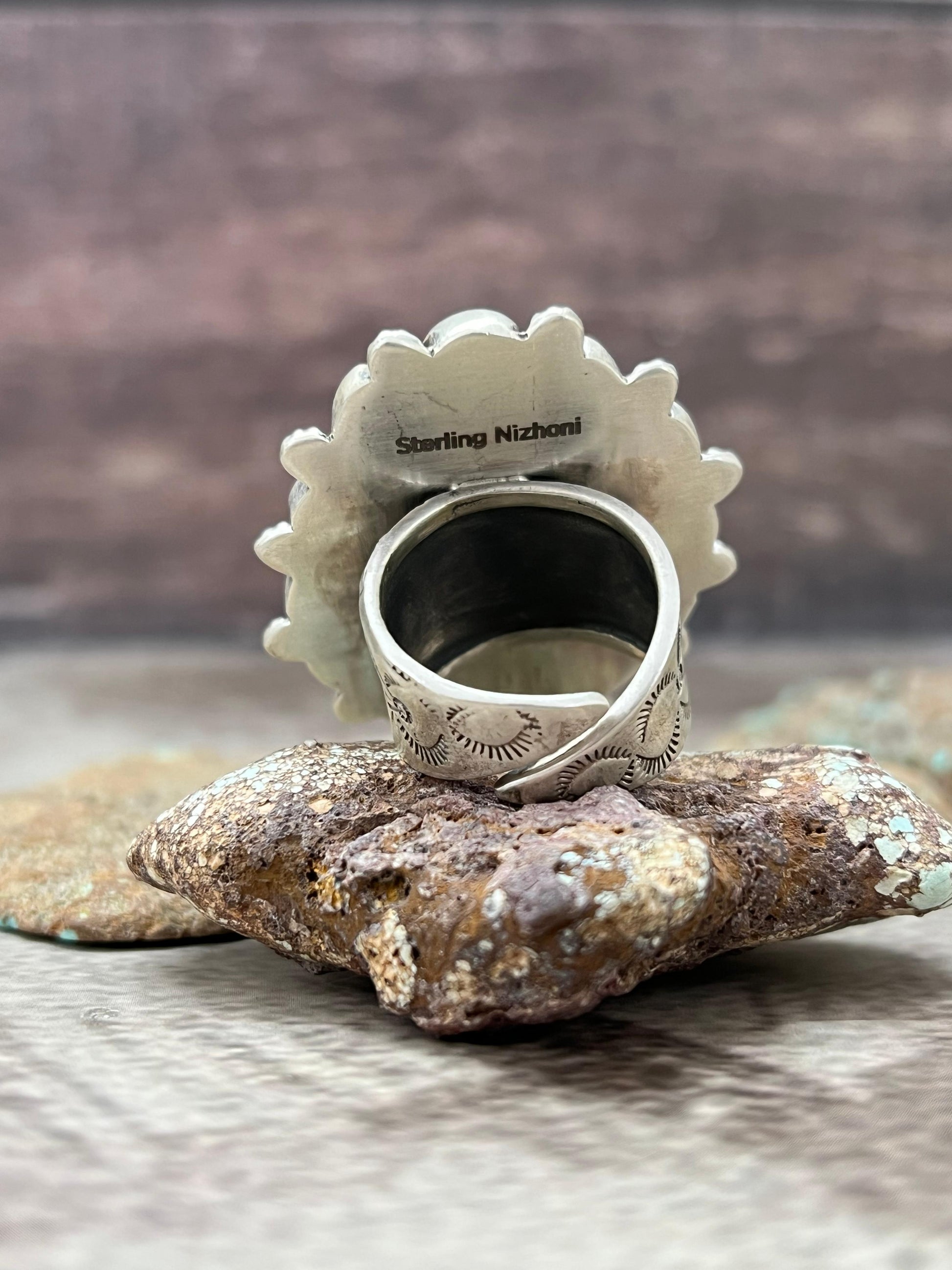 Handmade Sterling Silver Hardy Pit Adjustable Ring with Signed Nizhoni