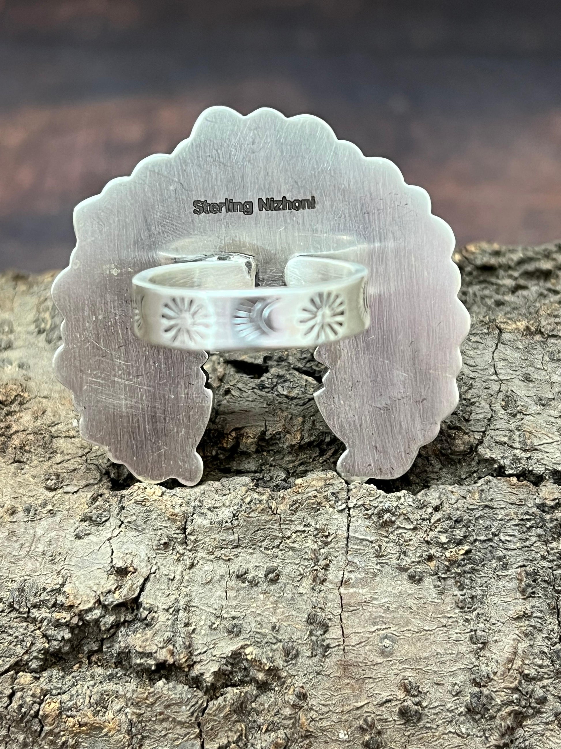 Handmade Sterling Silver Sonoran Mountain Turquoise Naja Adjustable Ring with Signed Nizhoni (6)