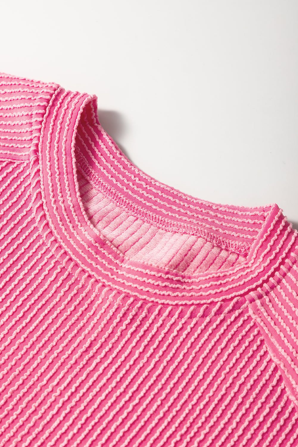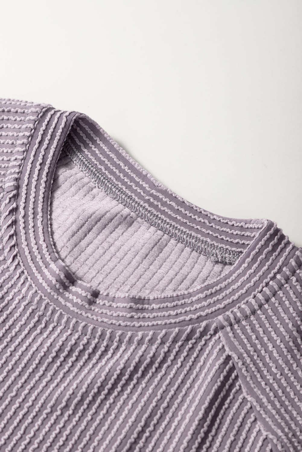 Luxury Solid Corded Short Sleeve T Shirt And Wide Leg Pants Set