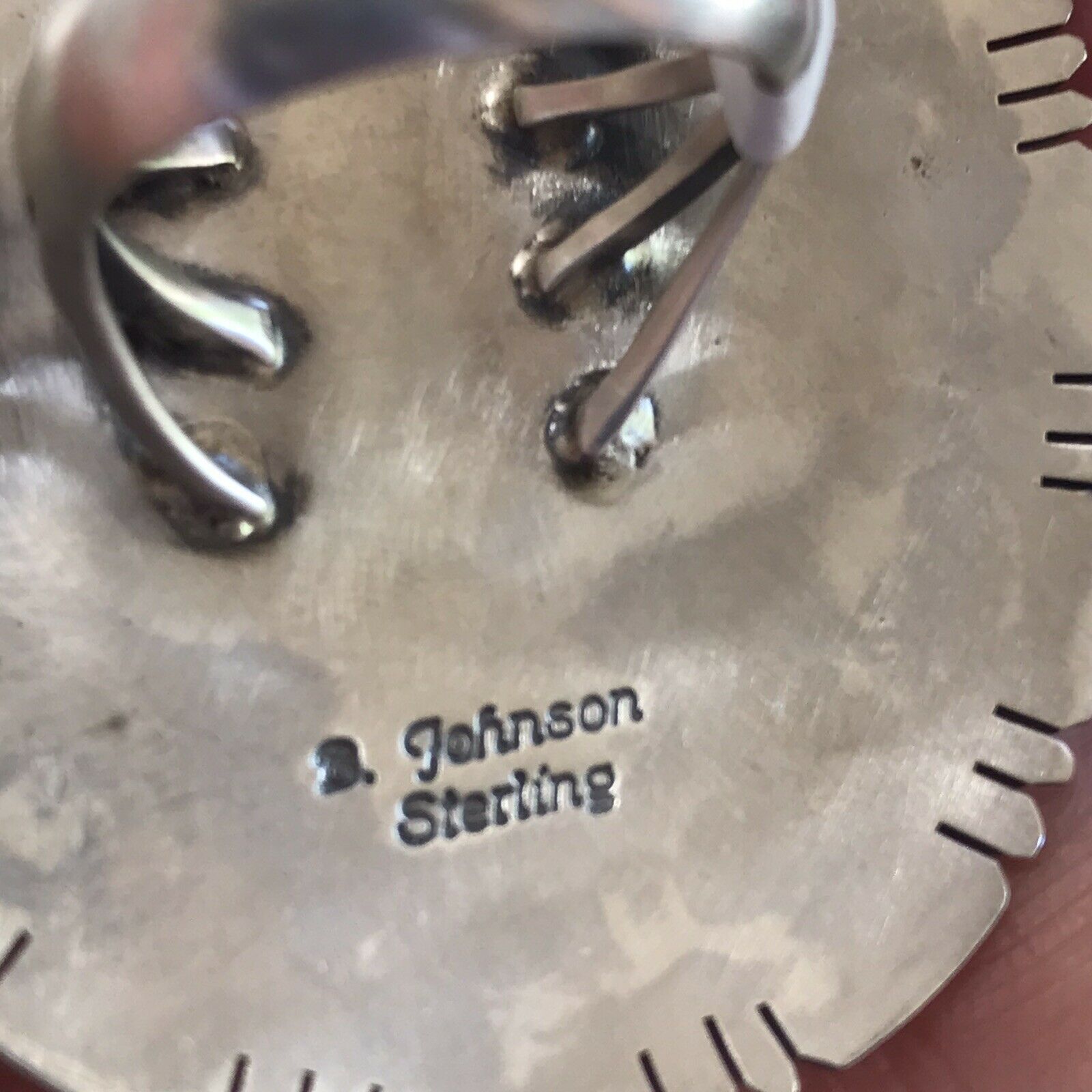 Southwest Love right here! Beautiful Turquoise and Sterling Silver. Sz 6. Signed by Artist B. Johnson and stamped Sterling. Measuring 2 1/2 inches long and 1 3/4 inches wide. Beautiful Statement Ring.