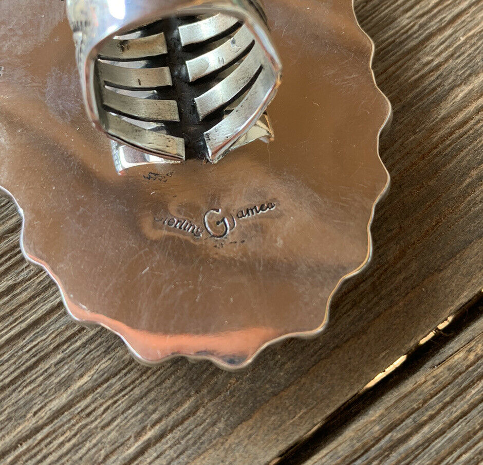 Check Out This Navajo Sleeping Beauty Turquoise & Bumble Bee Statement Ring!! Size 7.25 This Ring is so Awesome! The length of this ring is 2 1/2 inches & 2 inches wide. Stamped Sterling & Signed By Artist Geraldine James.