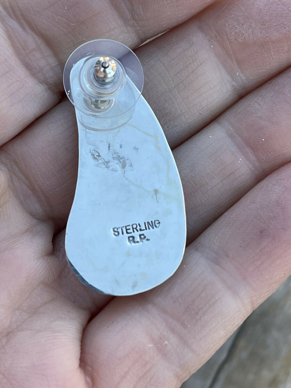 Navajo Sterling Silver & Turquoise Shadow Box Earrings. Measuring 1 1/4 inches long and 3/4 of an inch wide. Stamped Sterling and signed by Artist. Such an great pair of earrings.