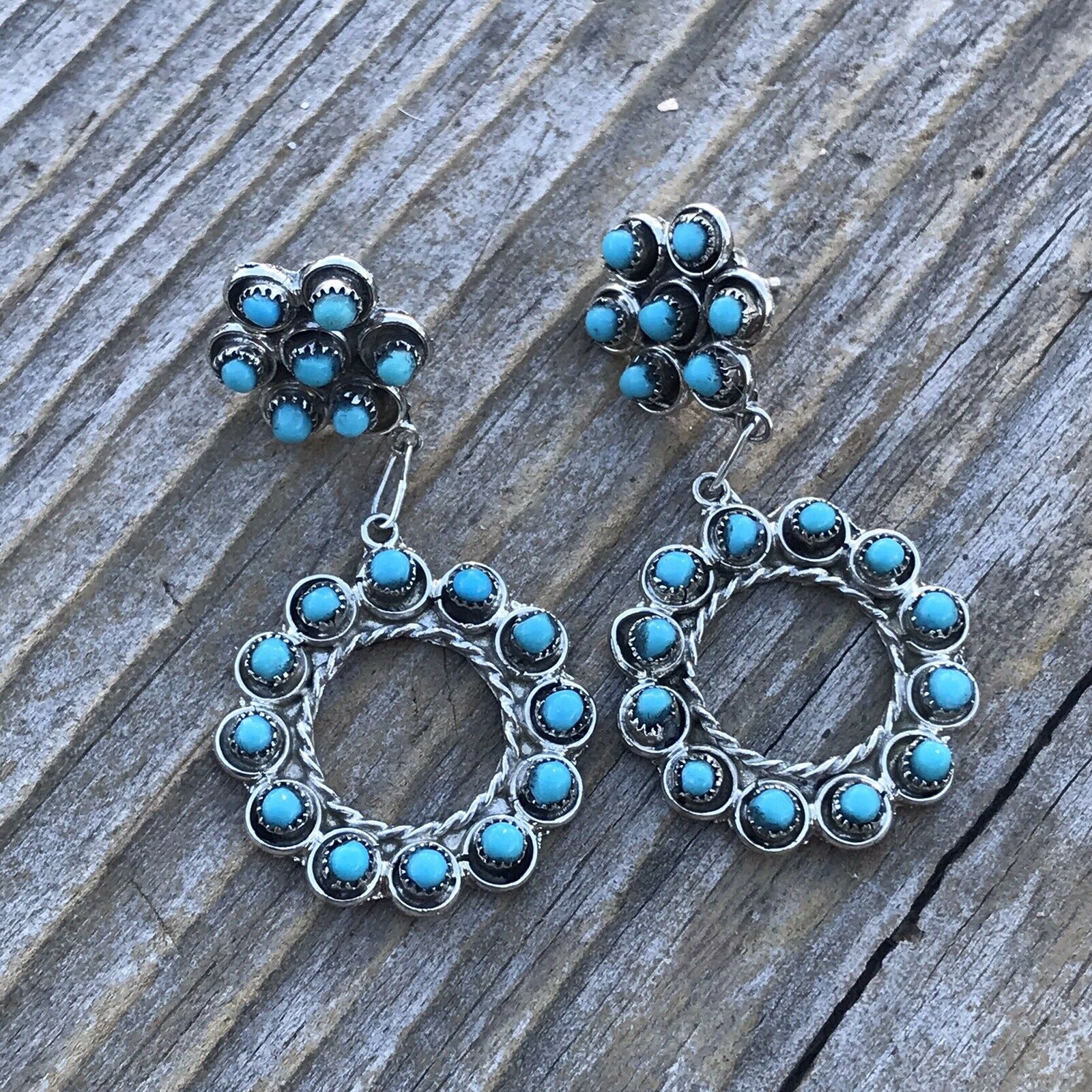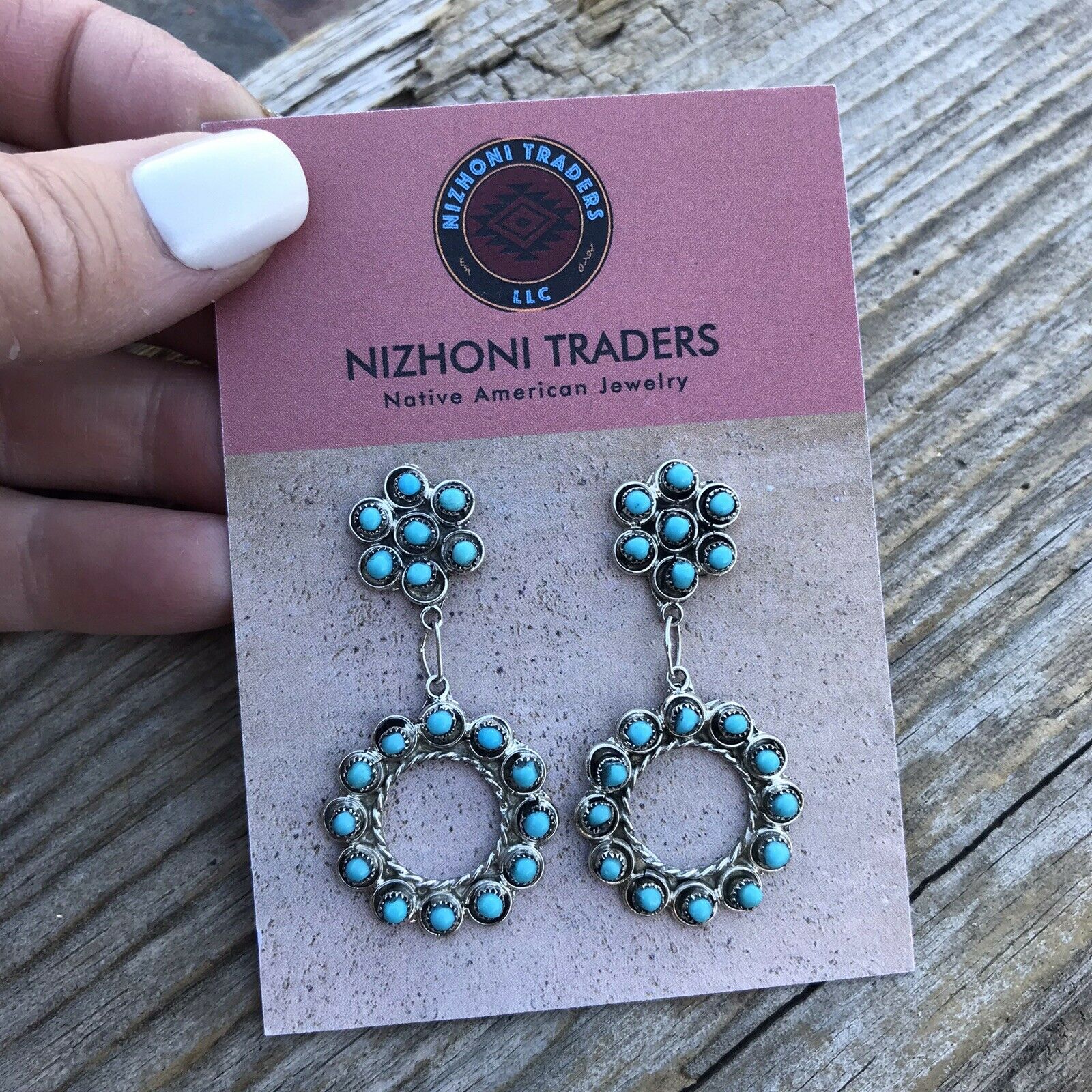 Navajo Turquoise Silver Petit Point Dangle Earrings