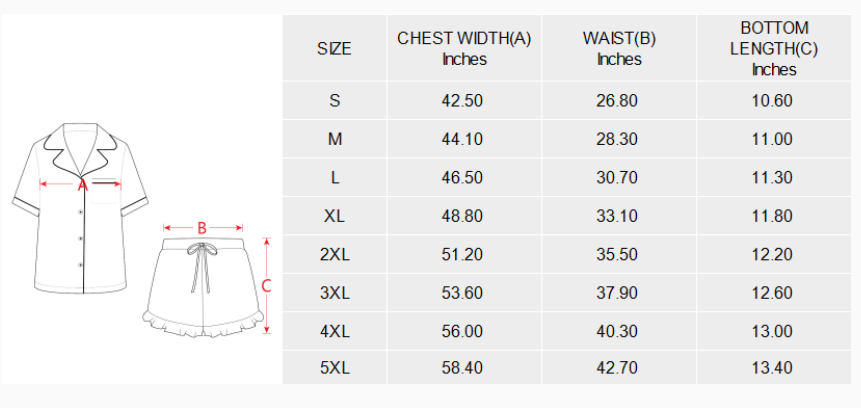 This casual pajama set features a short sleeve button-down top with a classic notch collar, paired with ruffled shorts adorned with a bow tie and an elastic high waist for a comfortable, soft fit suitable for all body types.