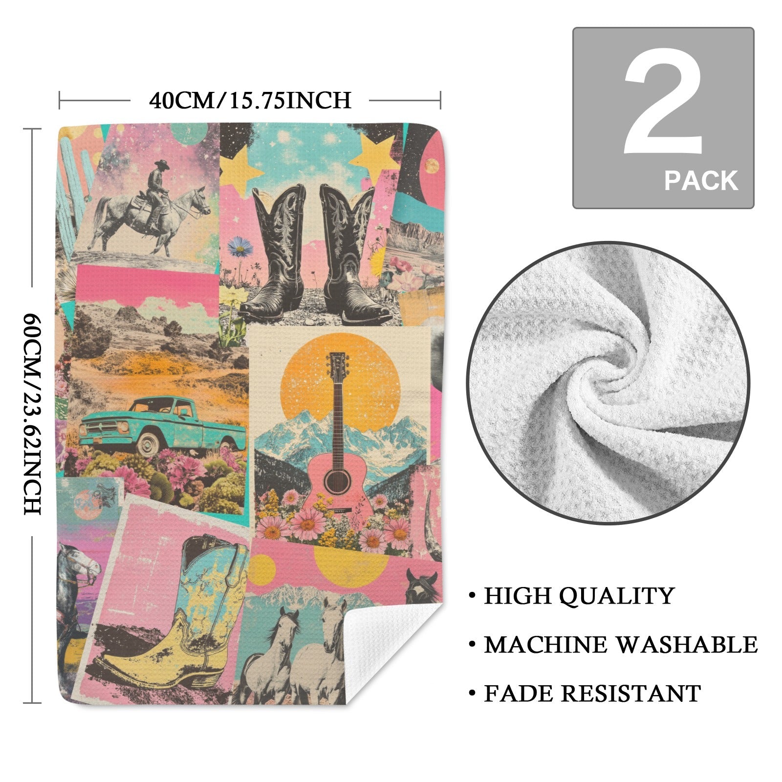 Retro Pop Western set of 2 Kitchen Dish Towels Made in America