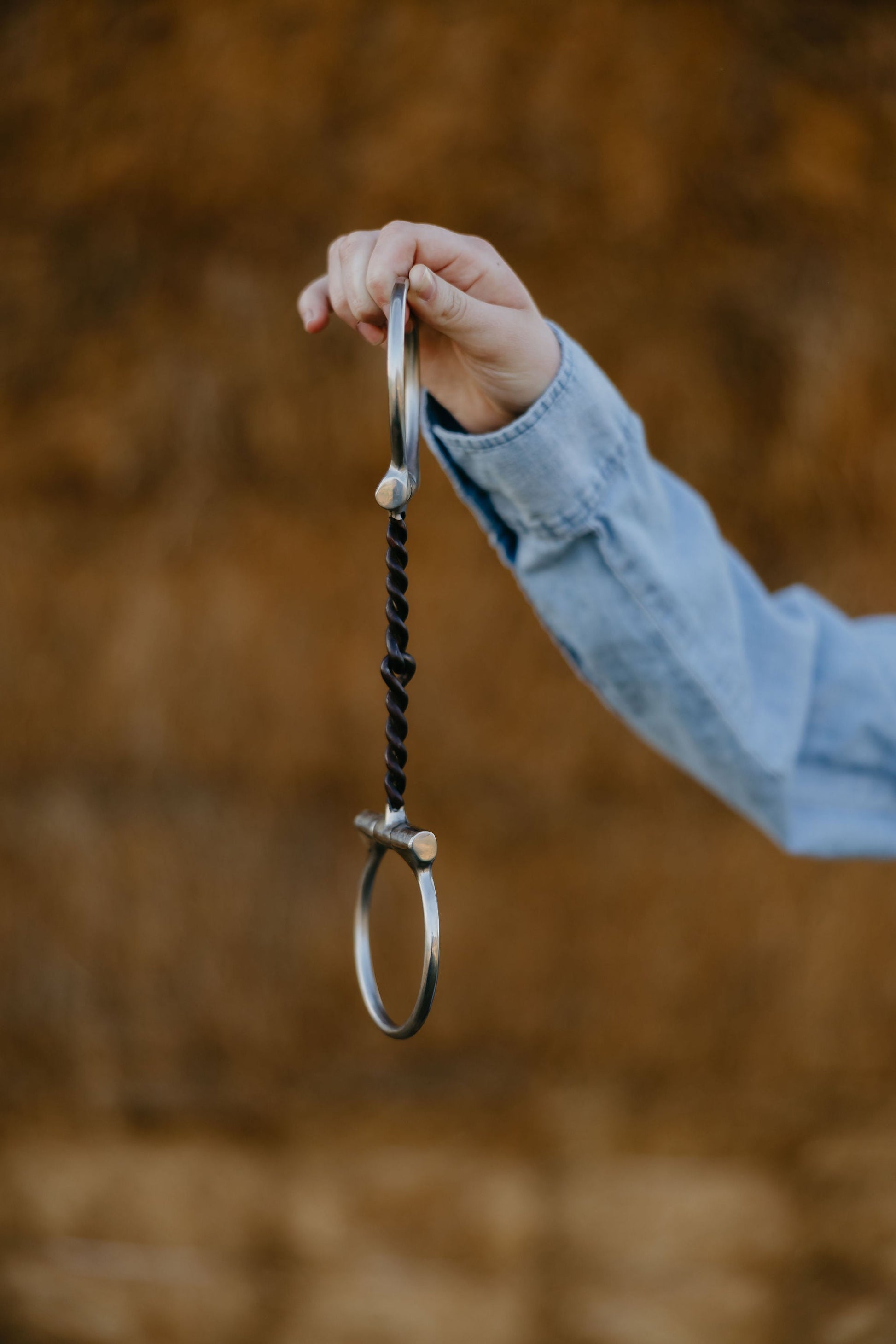 This bit features a sweet iron twisted wire mouthpiece, and is a level 2 bit. A level 2 bit is great to tune horses that may be initially dull or heavy on a level 1 bit. This bit is designed for temporary use, and we recommend putting your horse back in a level 1 snaffle once he responds to this bit.