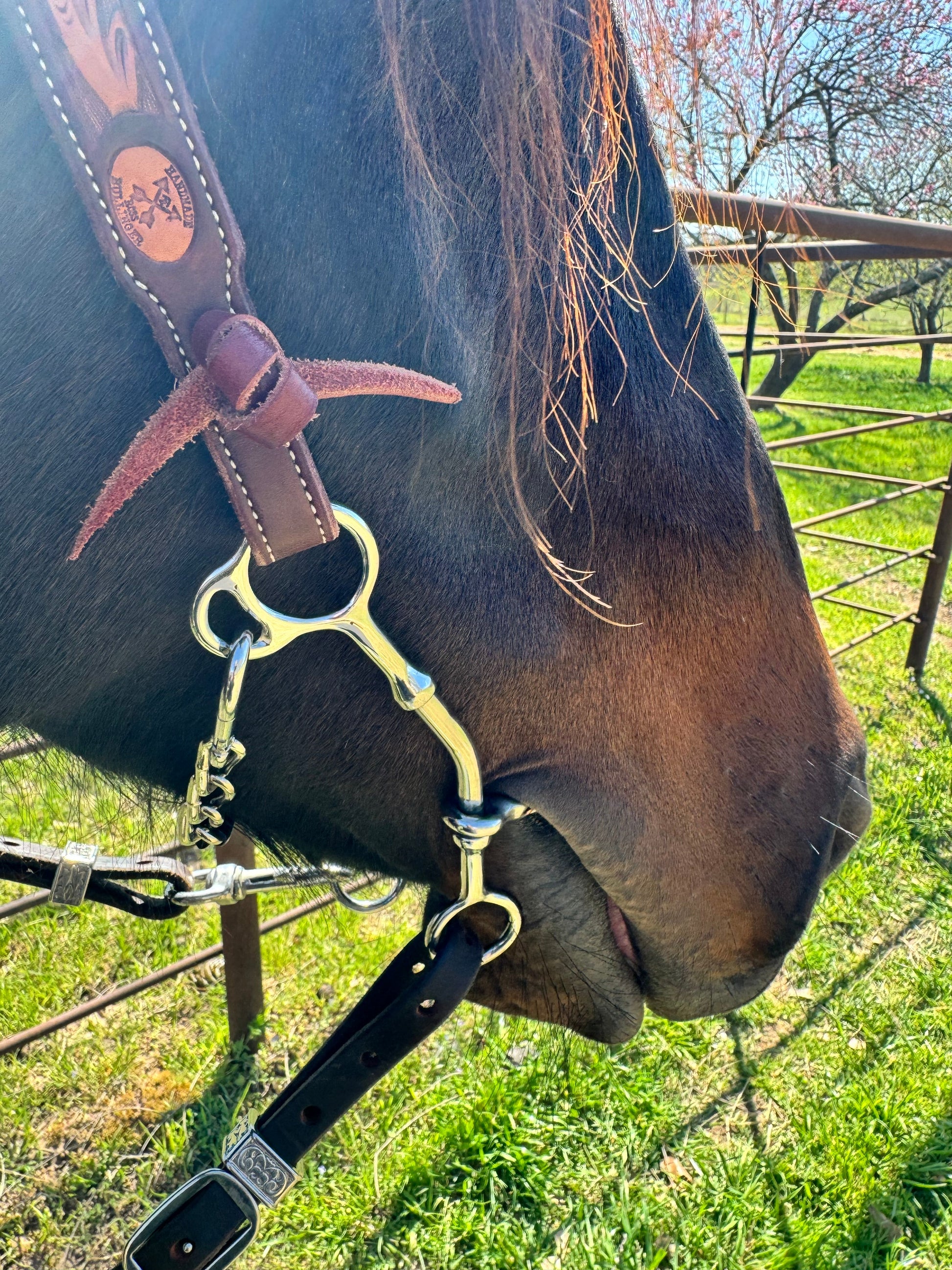 the slight bend in this shank is enough to not be offensive, but it doesn’t slow down the action. I was personally not a gag fan because I don’t care for the slow reaction, it this bit gives a quicker reaction than most gags I’ve tried. It has the feel of a lifter bit so you don’t get just nose and flex.