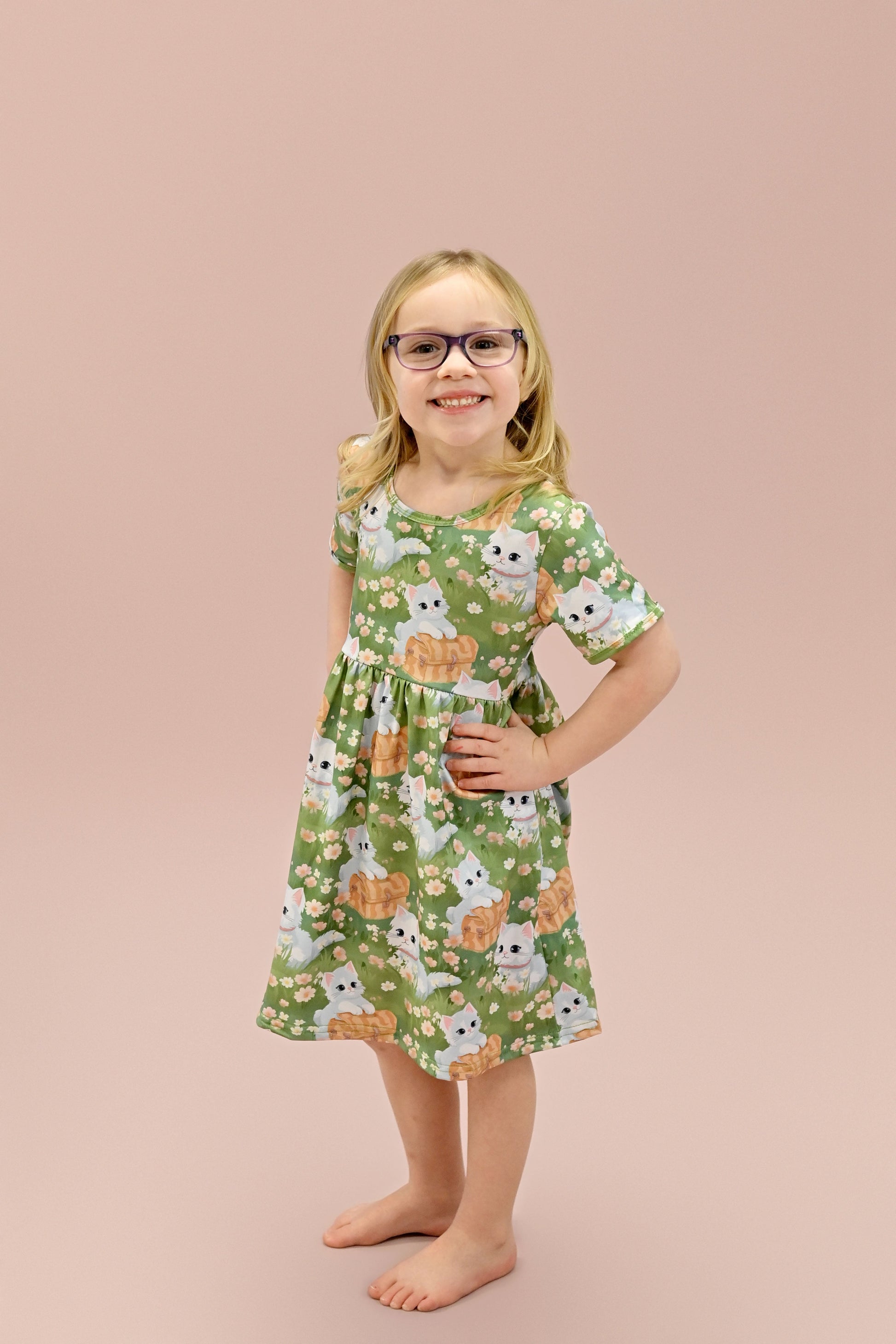 Spring Time Kitty Short Sleeve Milk Silk Dress!
