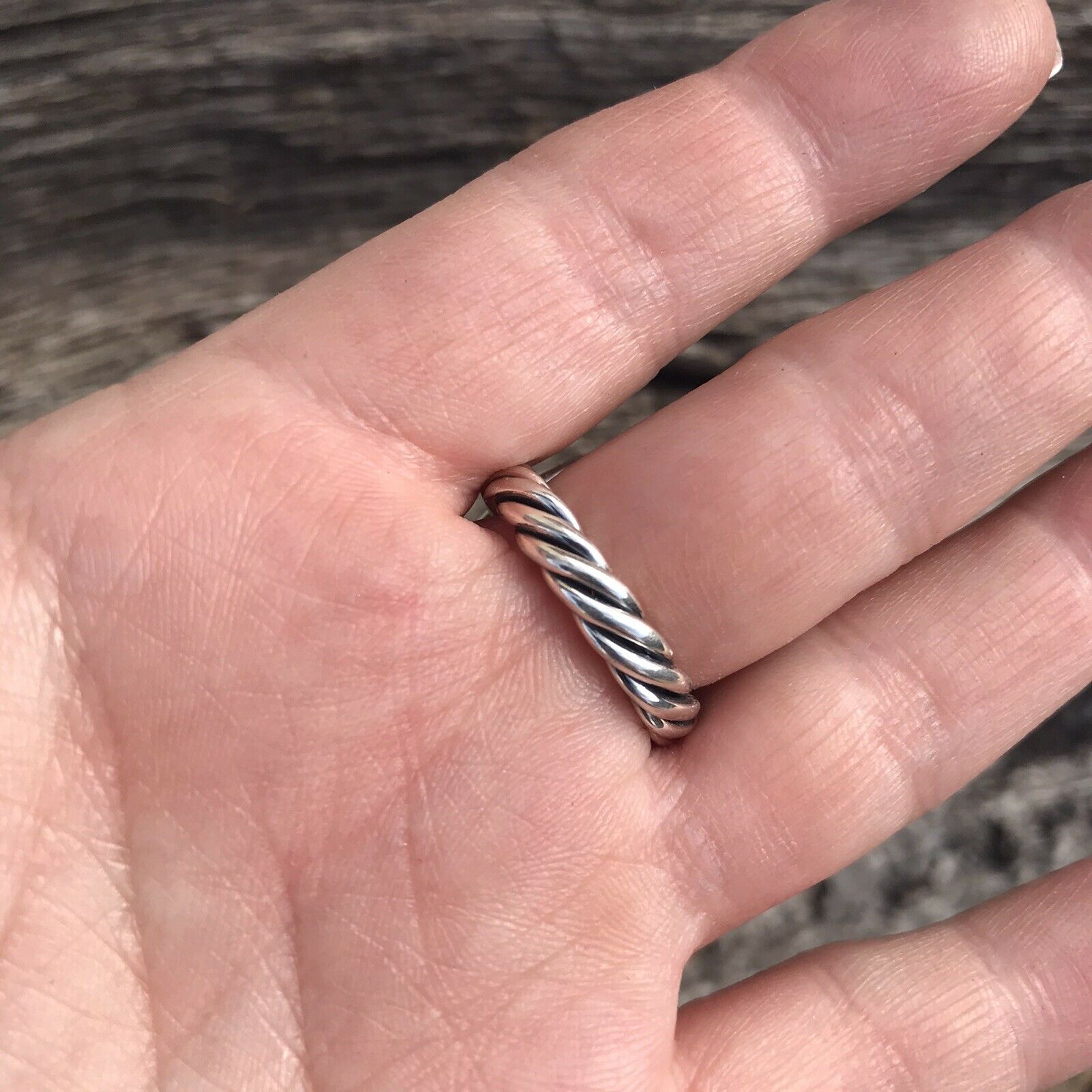 Stunning Rope Style Turquoise & Sterling Silver Navajo Ring Size 6