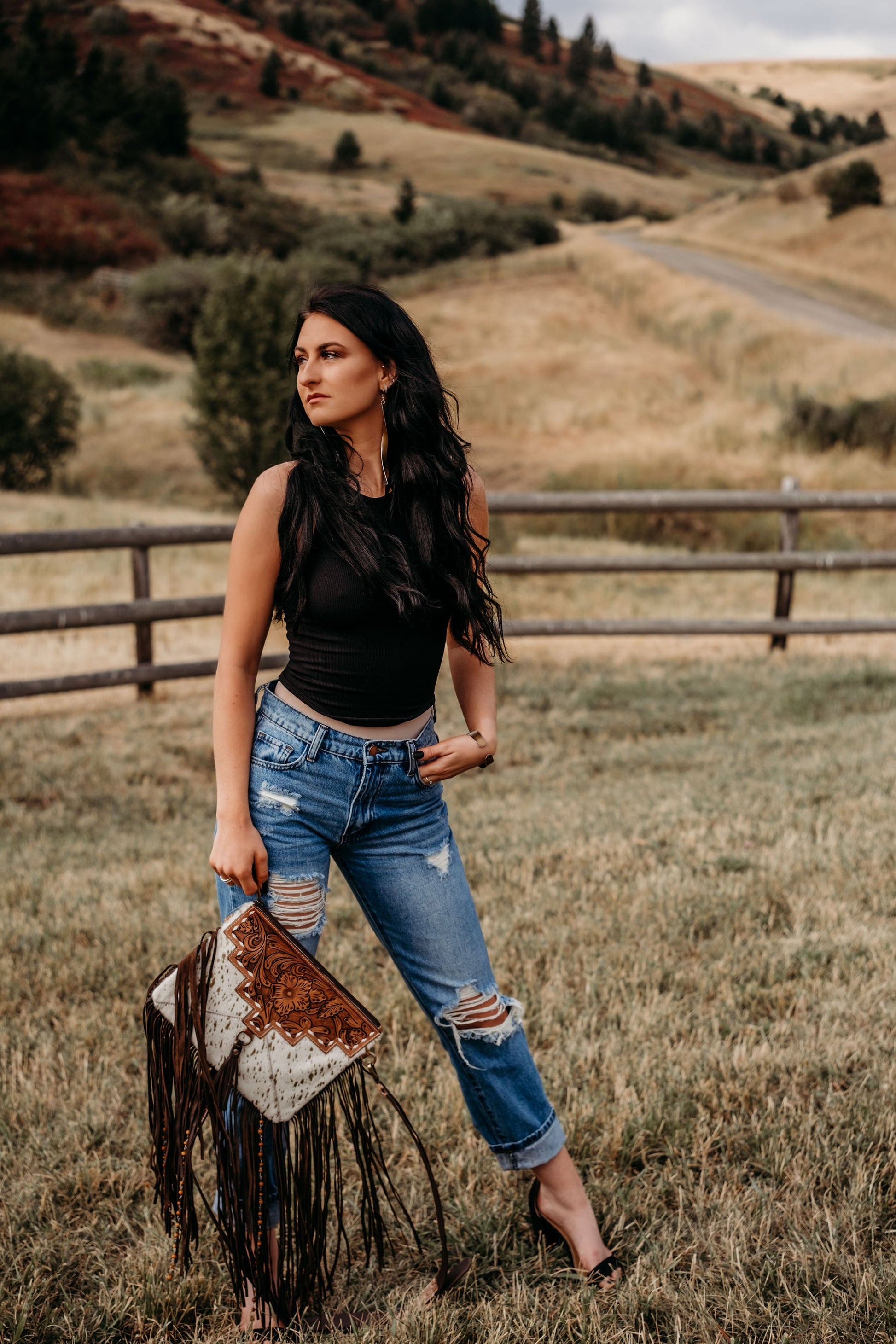 I designed this purse to be used for every moment in life! Whether you are in your everyday outfit, or booking your concert tickets to see your favorite artist, you can be sure that this purse will bring your aesthetic together beautifully. This purse boasts a tooled adjustable and removable strap, and an interior zipper pocket while the purse closes via zipper at the top. Please note every Purse will be one of a kind as each purses made with new unique cowhide pieces.