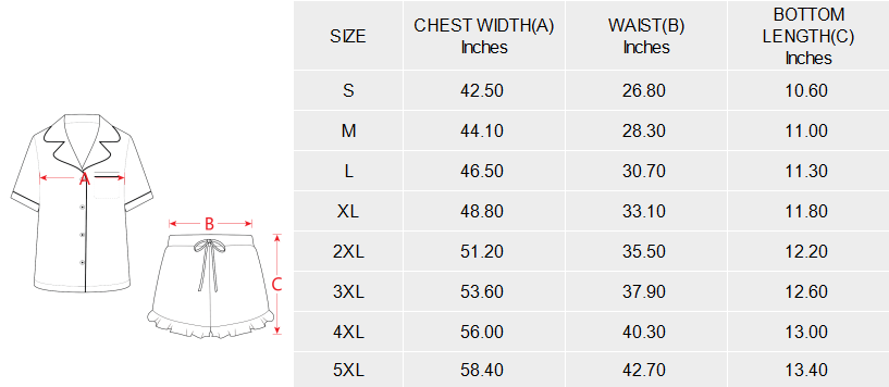 - This casual pajama set features a short sleeve button-down top with a classic notch collar, paired with ruffled shorts adorned with a bow tie and an elastic high waist for a comfortable, soft fit suitable for all body types.