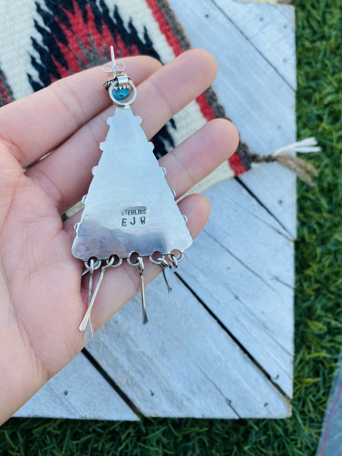 Zuni Sterling Silver And Sleeping Beauty Turquoise Dangle Earrings. These gems are 3 1/2 inches long and 1 3/8 inches wide. These earrings are signed by the artist and Stamped Sterling Silver. Beautiful bright blue turquoise . Absolutely Breathtaking.